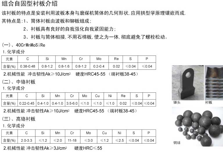 组合自固型衬板..
